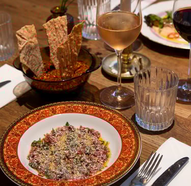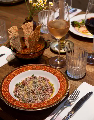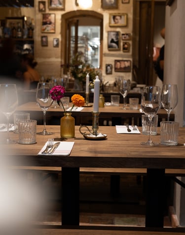 La cuisine y est créative, inspirée de traditions méditerranéennes et levantines, pensée pour être partagée et découverte, assiette après assiette.