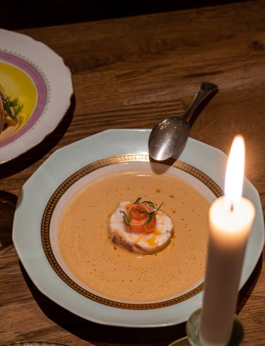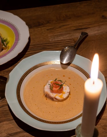 Les plats arrivent comme des surprises, pour soi-même ou à partager. Cela invite à la chaleur d’un bon repas, entourée des personnes que l’on aime. Les saveurs sont équilibrées, parfois inattendues. Les textures se répondent. Les épices et les herbes soulignent la générosité des compositions.